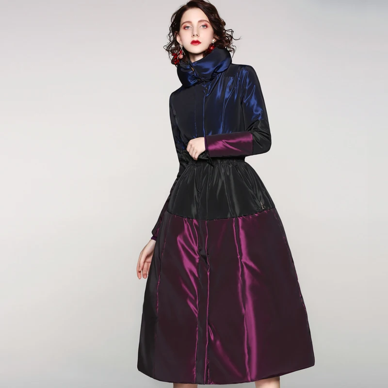 Парка женская зимняя на утином пуху, с воротником-стойкой, на молнии