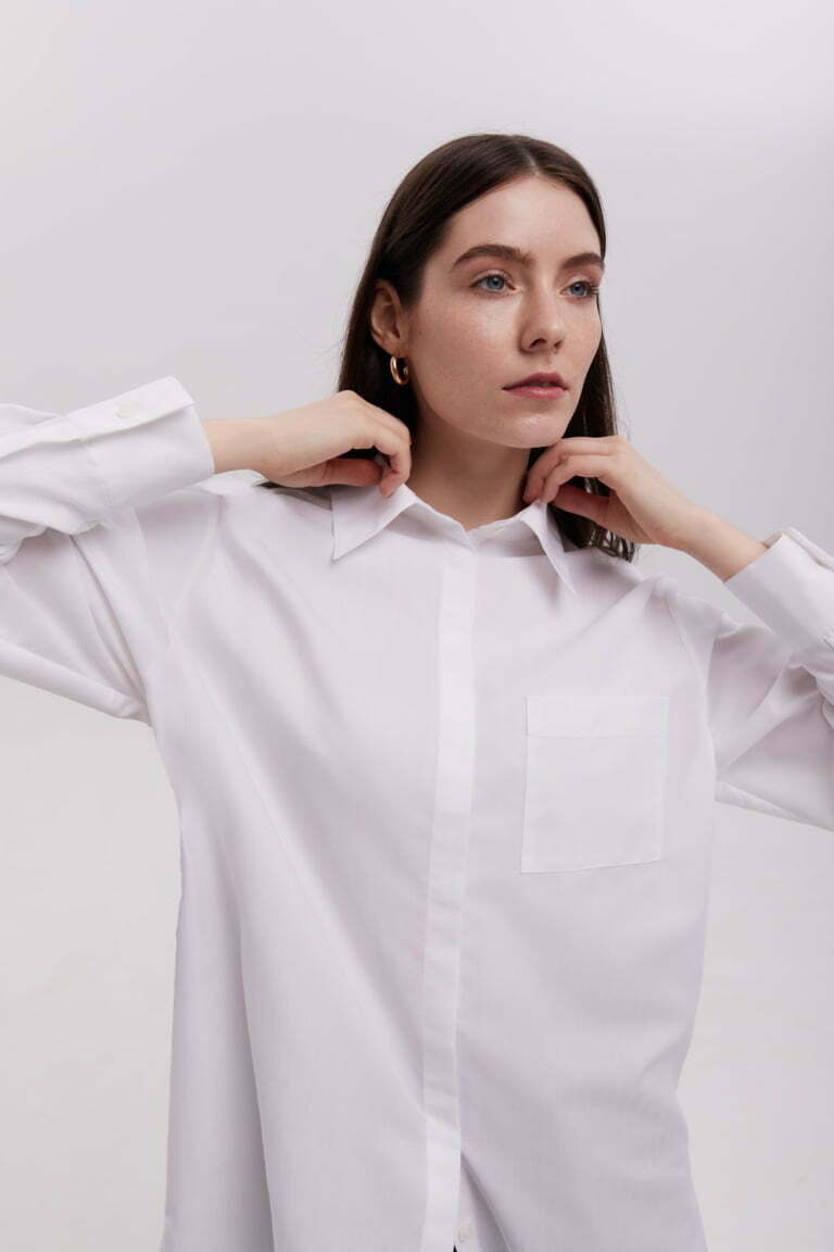 Купить Хлопковая рубашка с пышными рукавами в бело-синюю полоску бренда