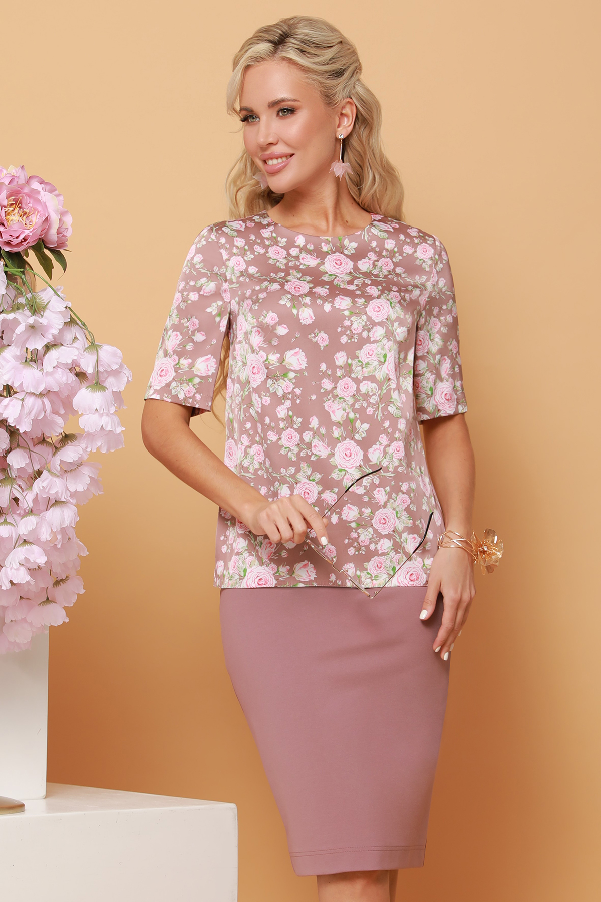 Купить Блузка розовая с розовым принтом по цене: 965 ₽ арт. Б-1688-0305