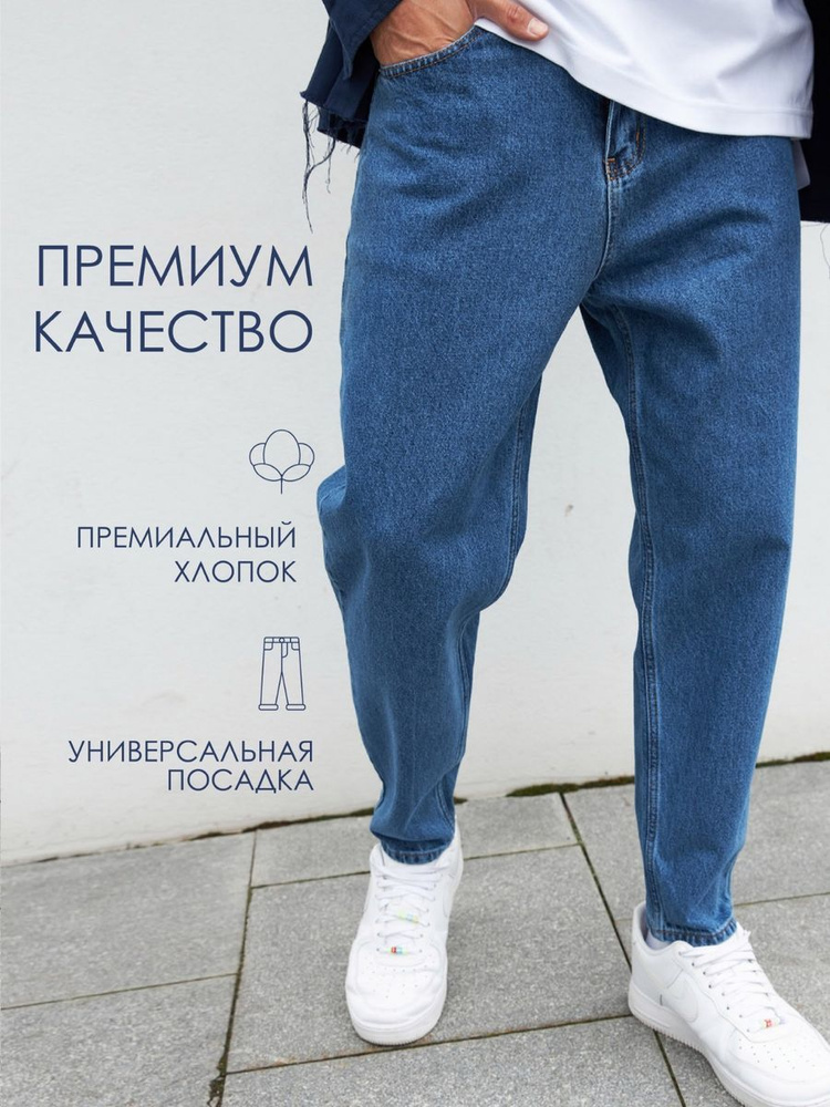 Джинсы Мужской синий бананы Хлопок, Эластан, размер 48, 50 Молния